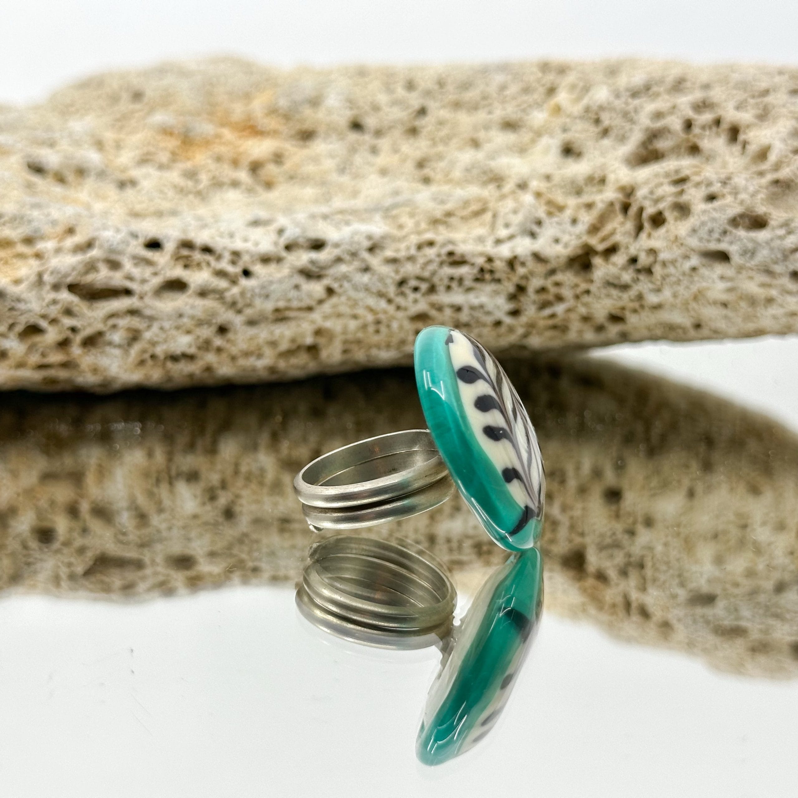 Inel reglabil din sticlă de Murano prelucrată manual.